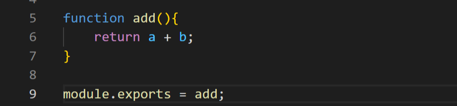 module.exports = add ; 로 { } 가 없으면, 값만 출력된다.