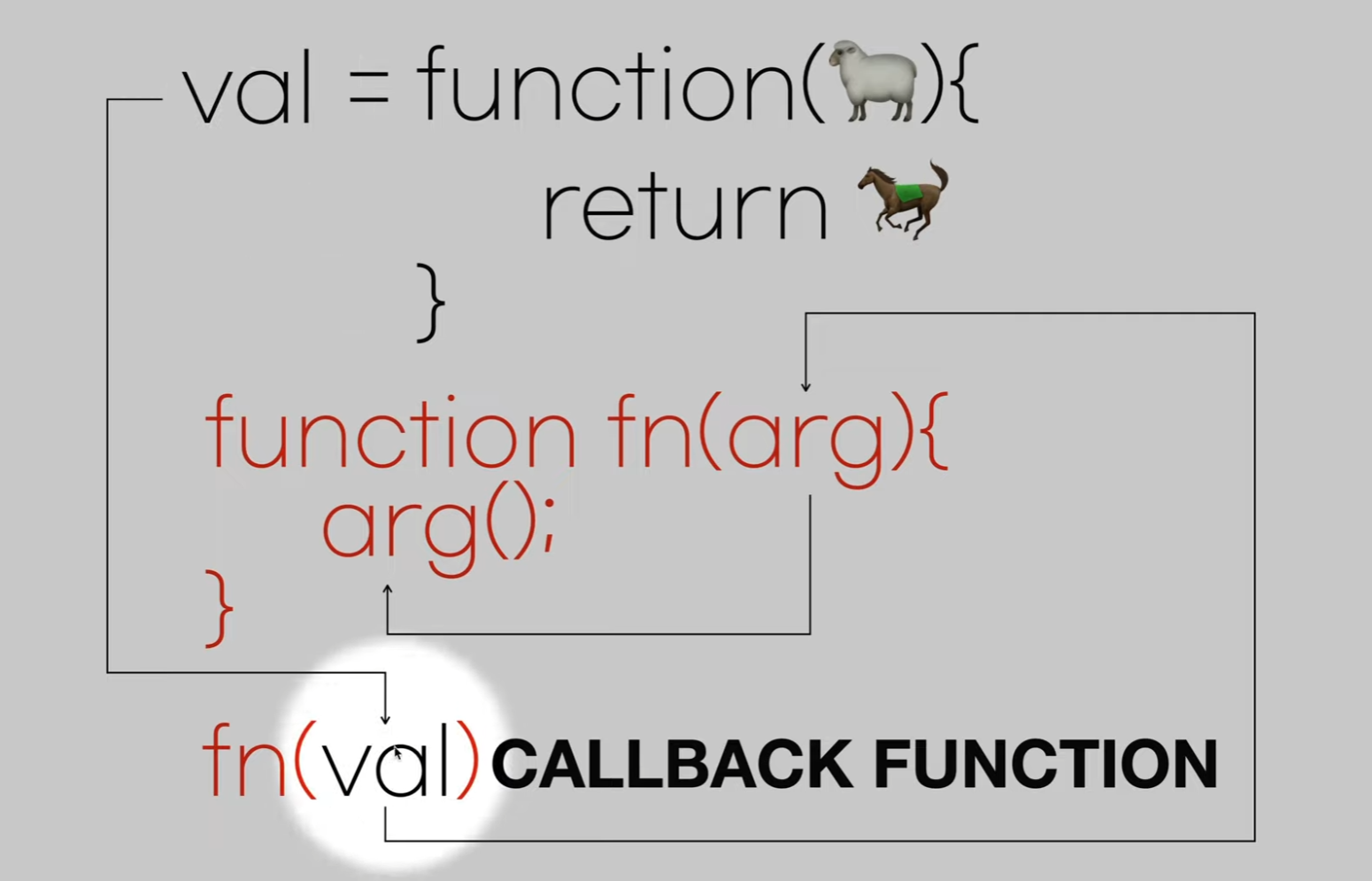 function fn(arg){ //(arg) 파라미터를 받아서 함수 안에서 파라미터를 함수로서 호출하고 있다.