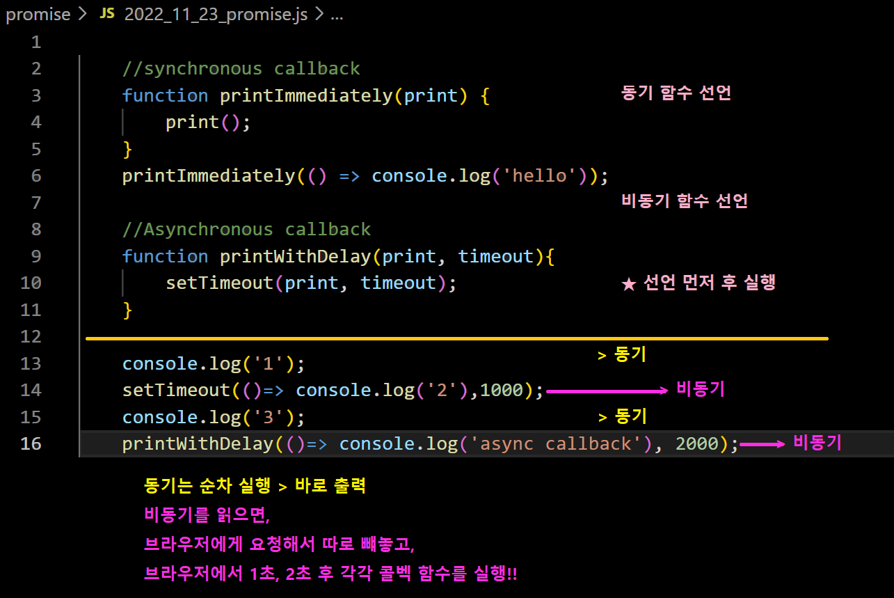 밑의 두줄은 콜백 함수 없이도 순차적 실행이 된다.