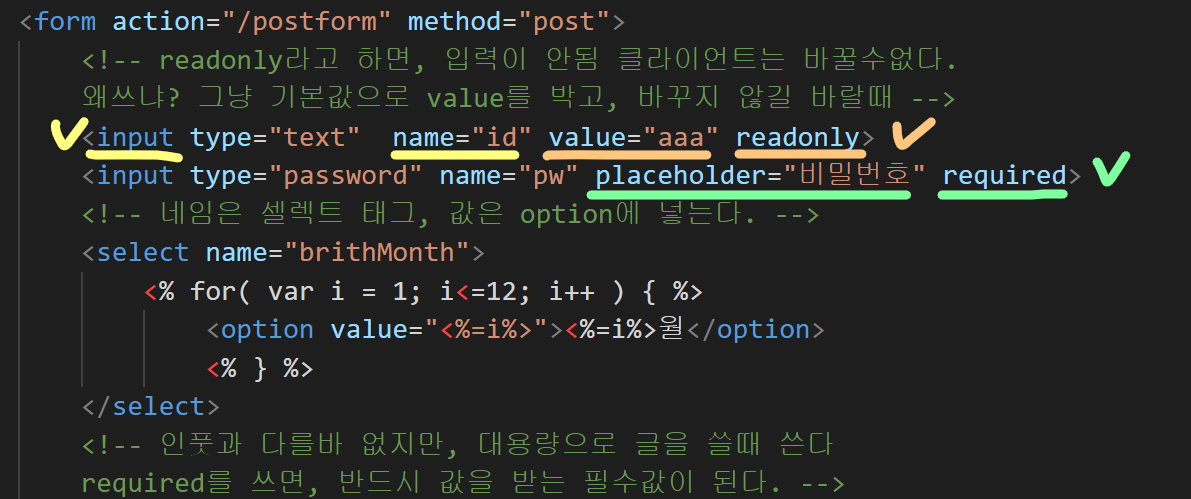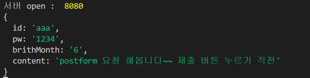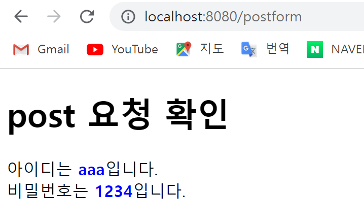 1. post 요청 form에서 제출 버튼을 눌러 정보를 전달하면, 받는 페이지가 /postform 이라는 주소에서 받겠다.