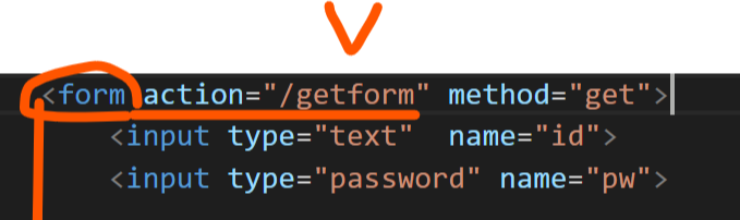 1. get 요청 form에서 제출 버튼을 눌러 정보를 전달하면, 받는 페이지가 /getform 이라는 주소에서 받겠다.