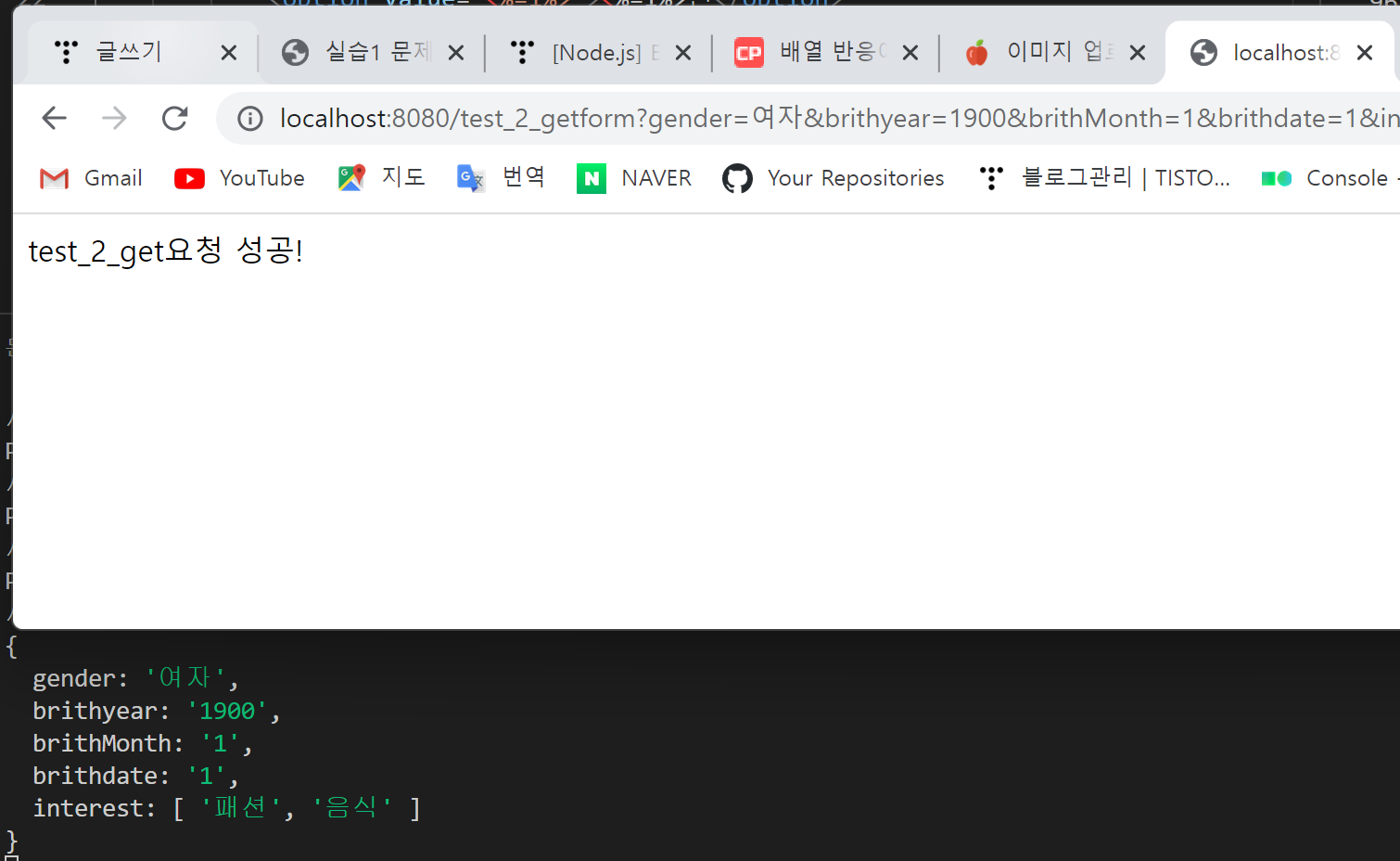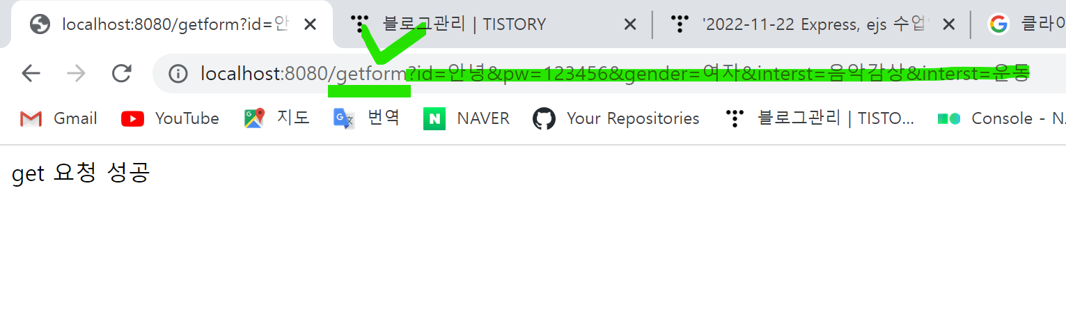 getform으로 정보를 받으면, get 요청 성공이라고 페이지에 뜬다