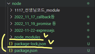 => express 모듈 설치로 인해서 추가된 애들이라서 git에 굳이 올릴 필요가 없음