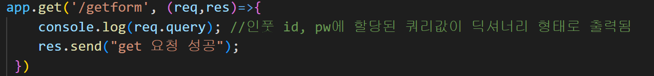 console.log(req(컴퓨터 > 서버 로 보낸 정보).query) => input으로 받은 정보 값을 딕셔너리 형태로 출력