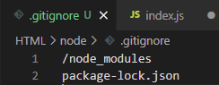 => .gitignore 파일 생성해서 /node_modules, package-lock.json 입력하여 2개 파일은 등록안되게 설정
