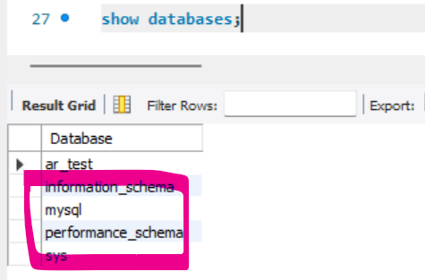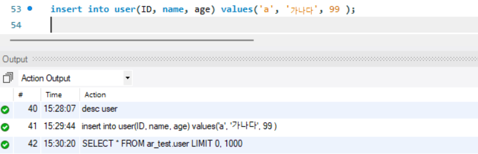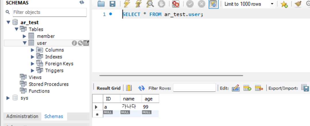use ar_test; 라고 써줘야함 ( 어떤 데이터베이스를 쓸지 지정 )
