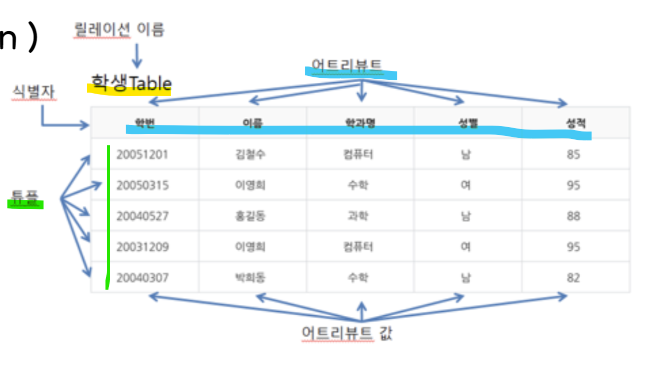 데이터 형식 = 이런 형태로 값을 받겠다 학번이라는 것은 정수형이야 이름이라는것은 문자열이야 id = 필드 / varchar 등이 값형식 !!
