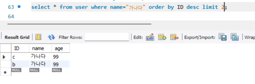 2. USE 이름 ; ( 데이터 베이스를 사용하겠다 )