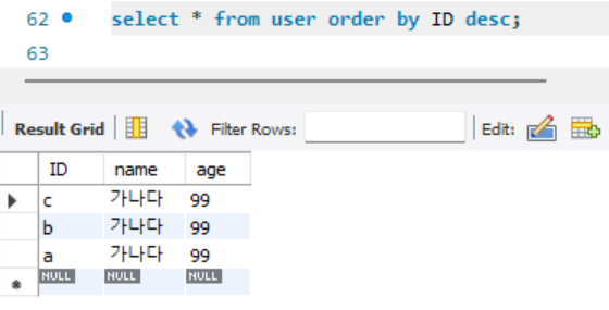*주의할 점 : 명령어 끝에는 세미콜론(;) 반드시 붙인다.