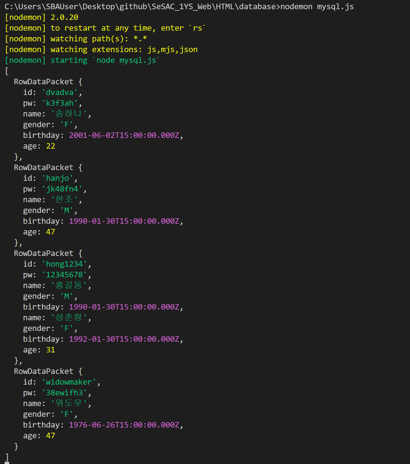 cnn.query('select * from user', (err, result) =>{ //유저에 대한 것을 가져오겟다