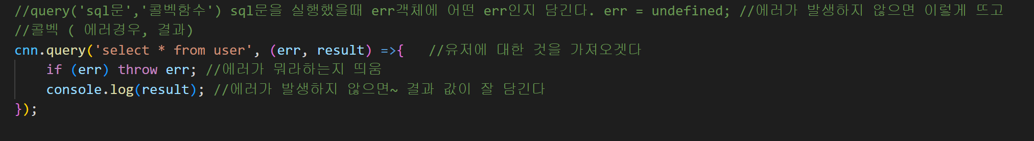 query 는 (err, result ) 라는 얘들을 콜벡 한다.