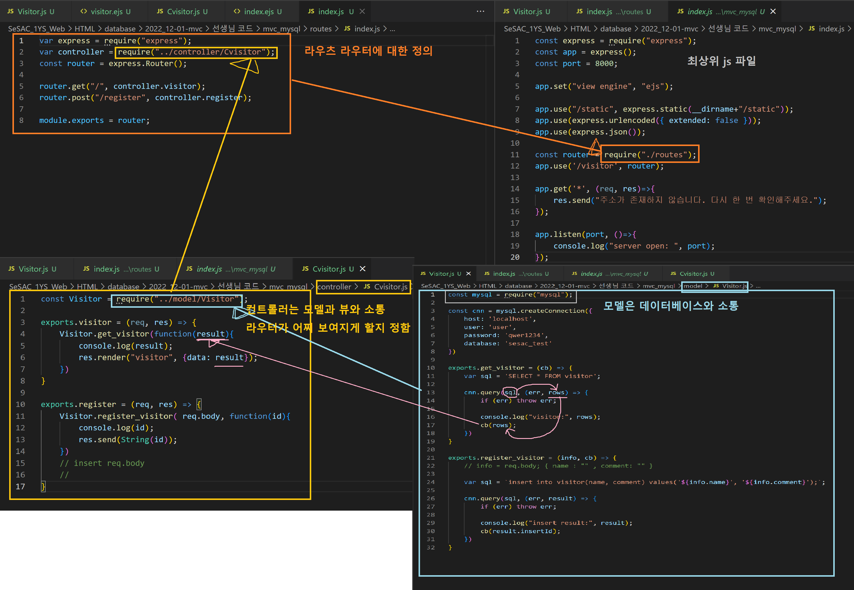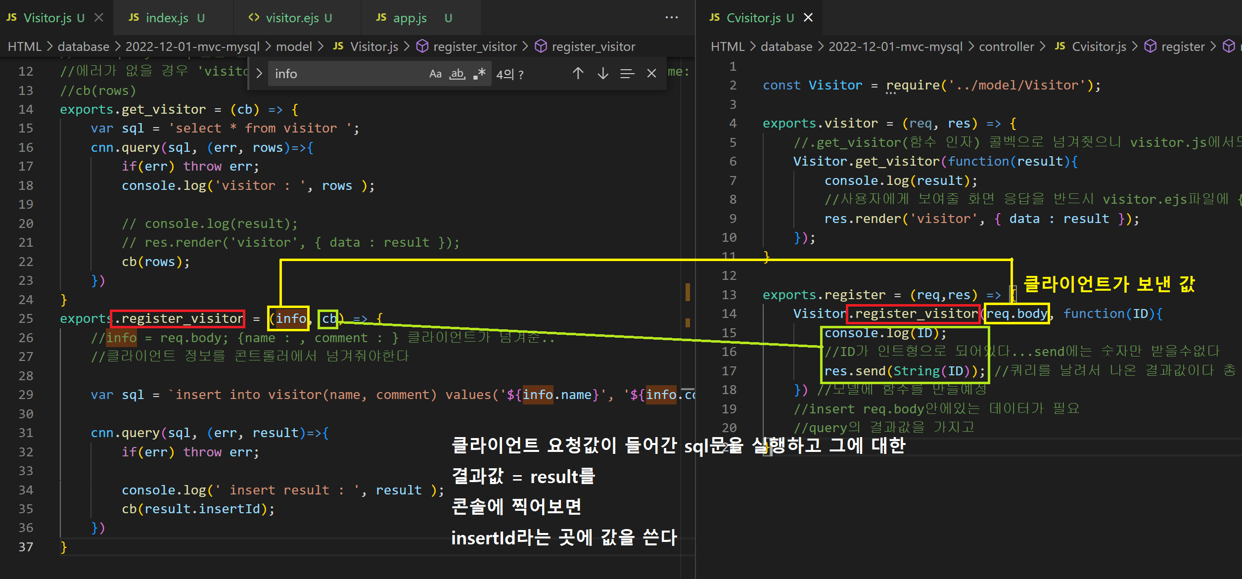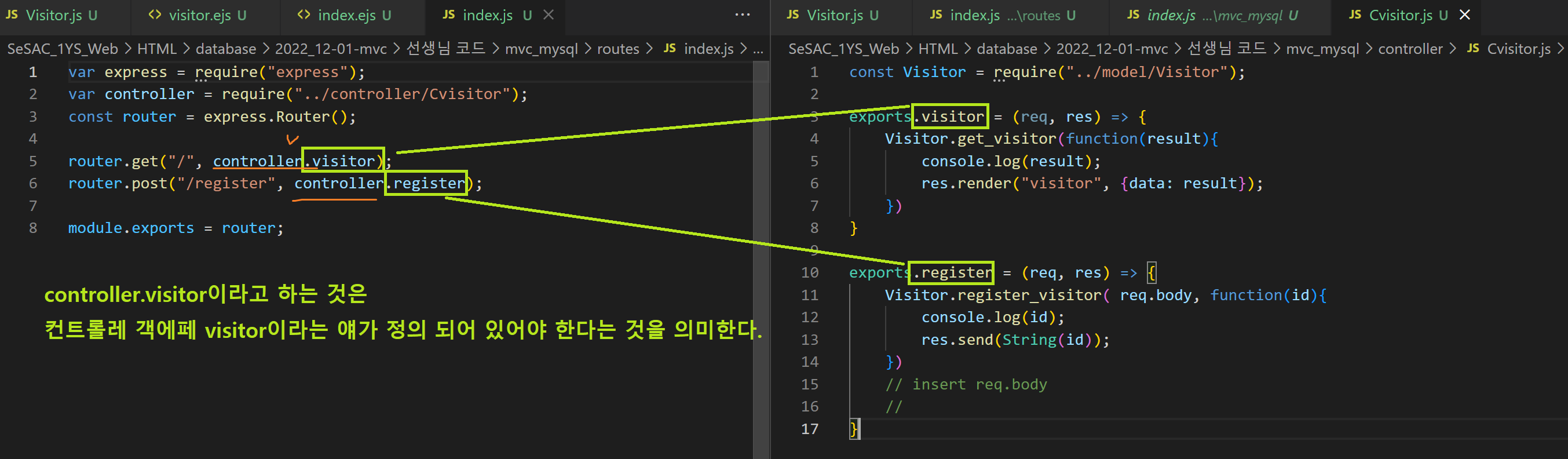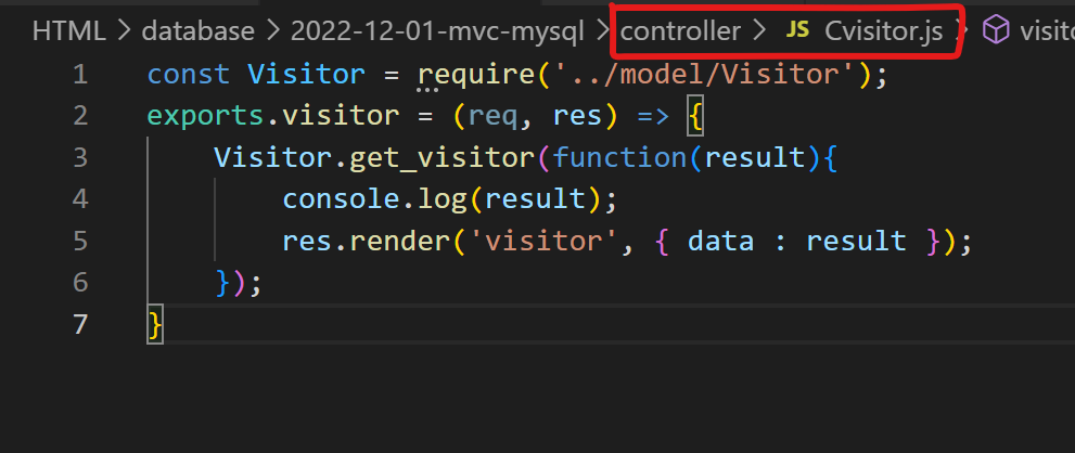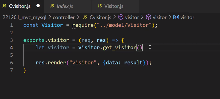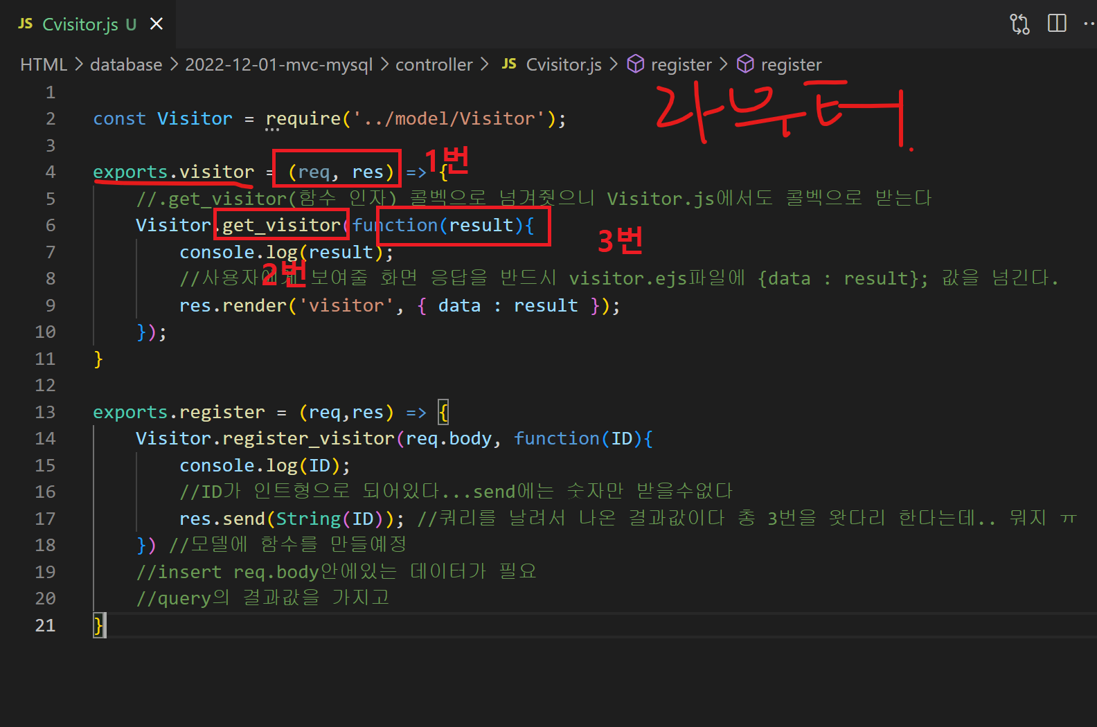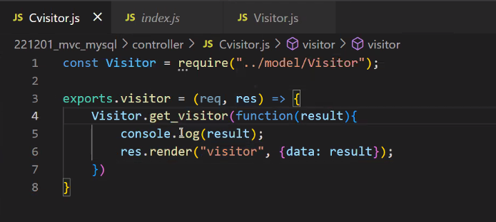 visitor.ejs 랜더하며 model/visitor의 데이터를 보기위해 ? 데이터 넘긴다?