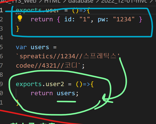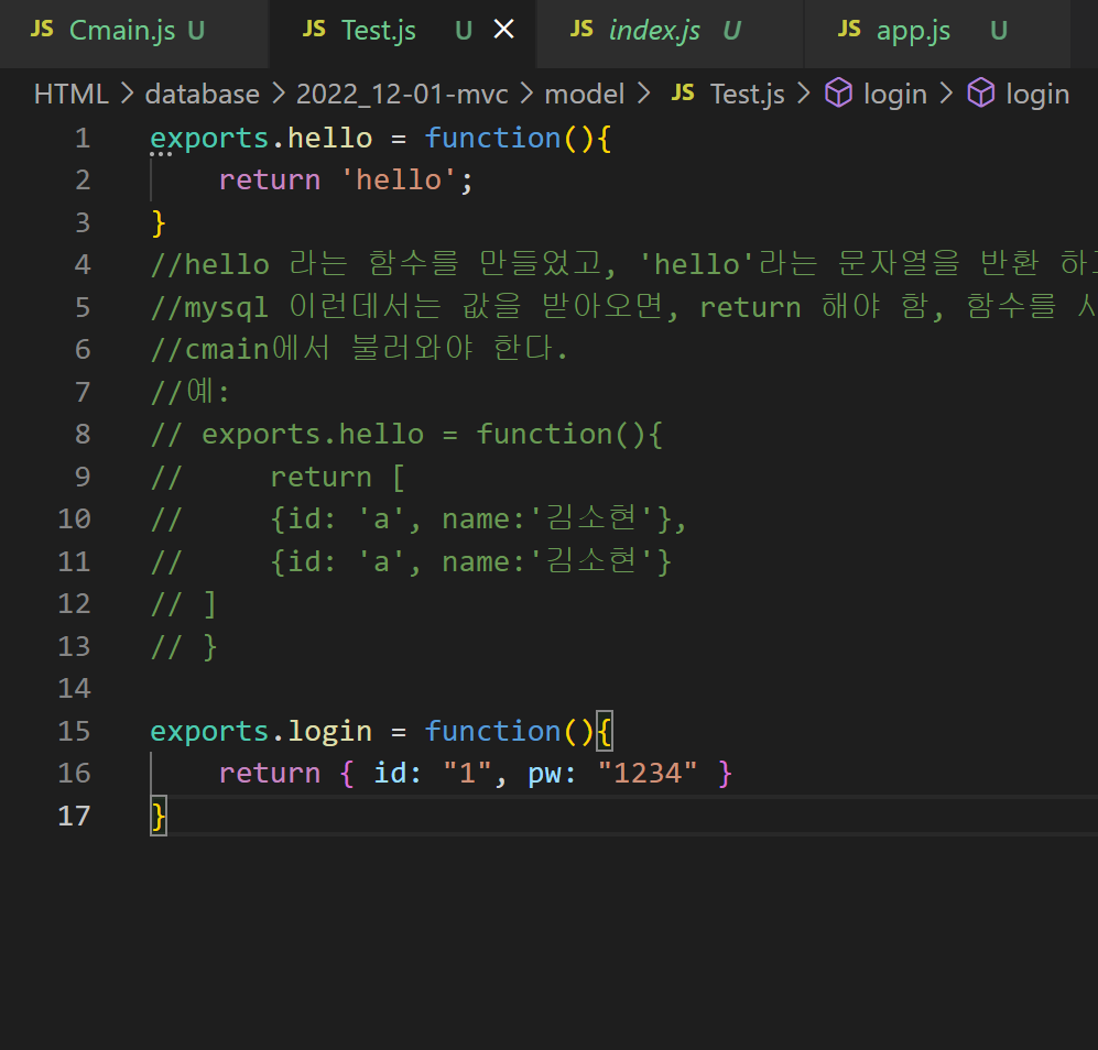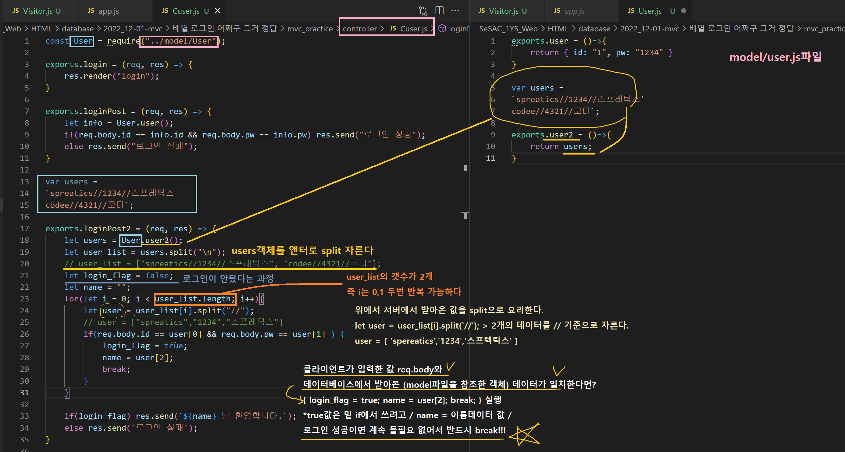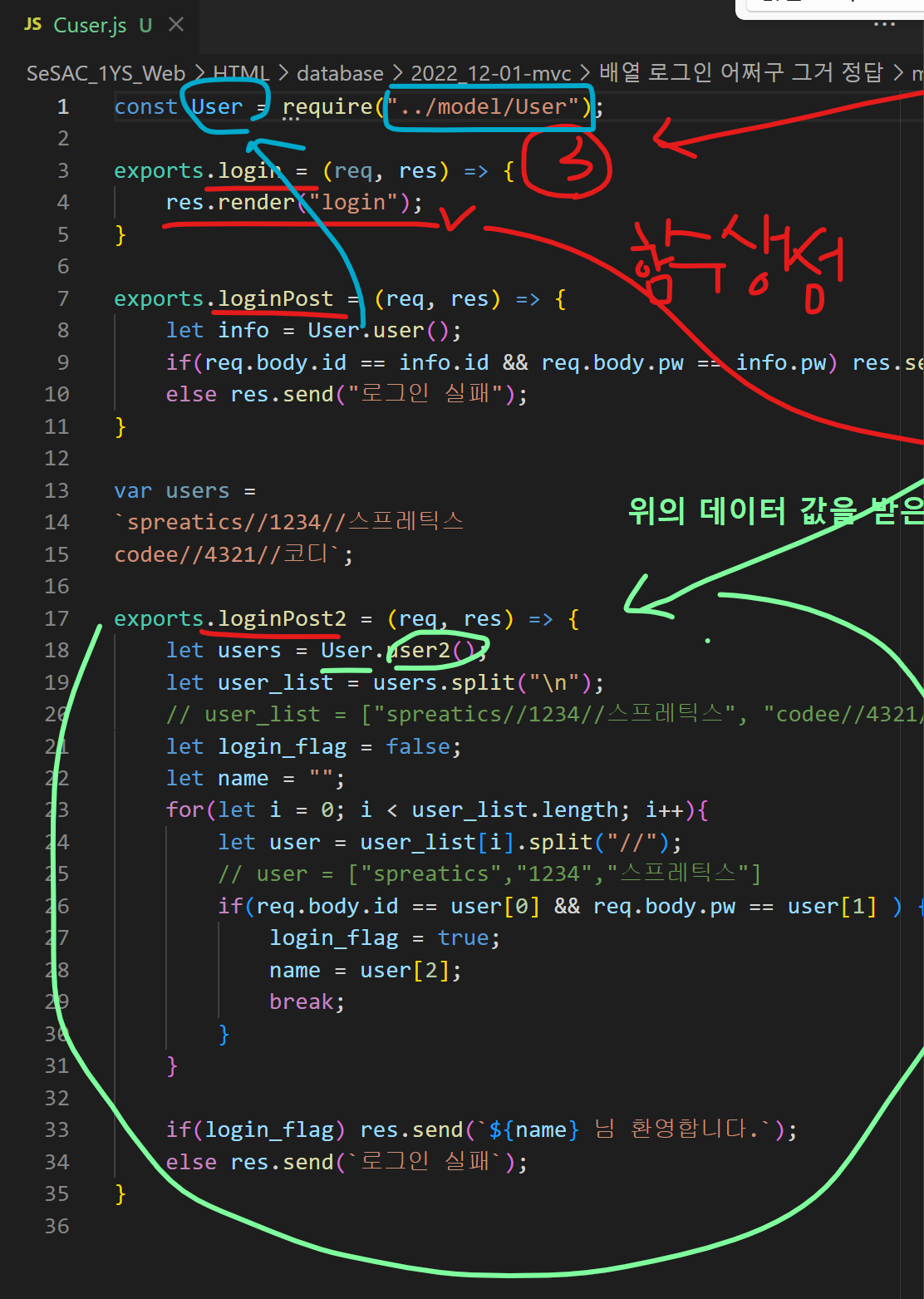 이것을 다시 컨트롤러 파일 CUser.js파일에서 불러와야한다