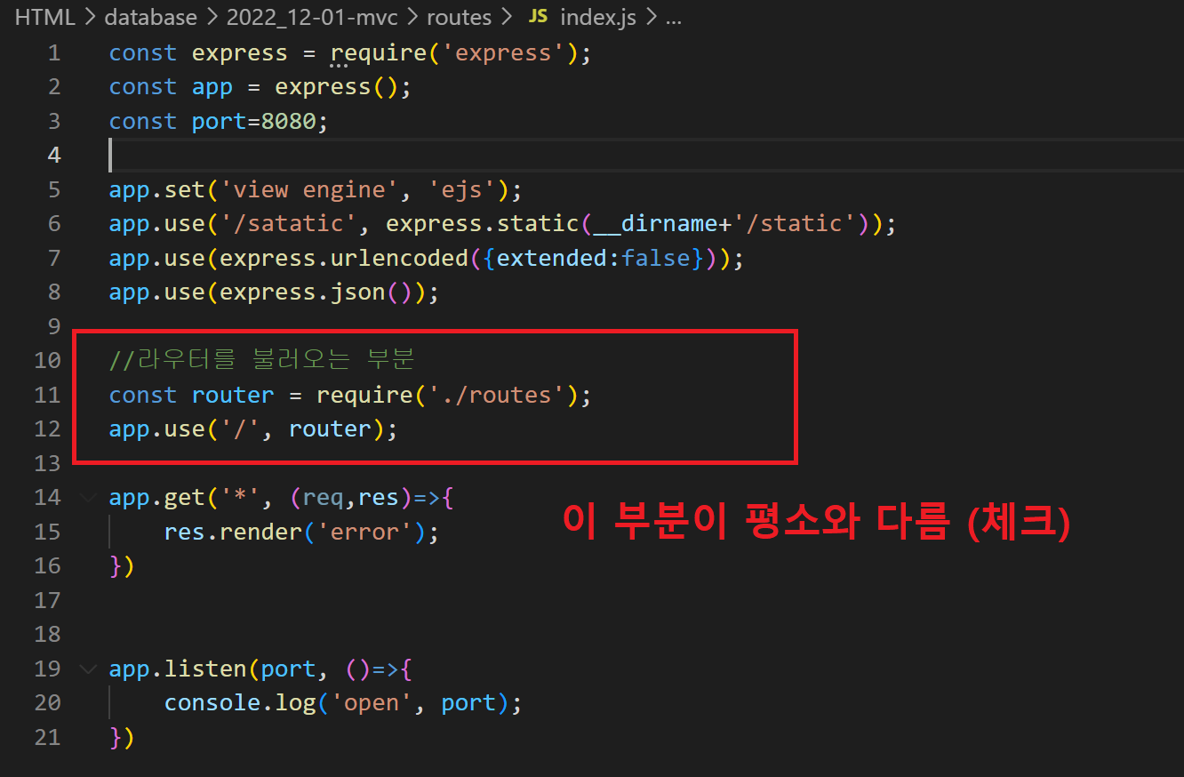 1. 최상위 js 파일에서 라우터를 불러오는 객체를 설정