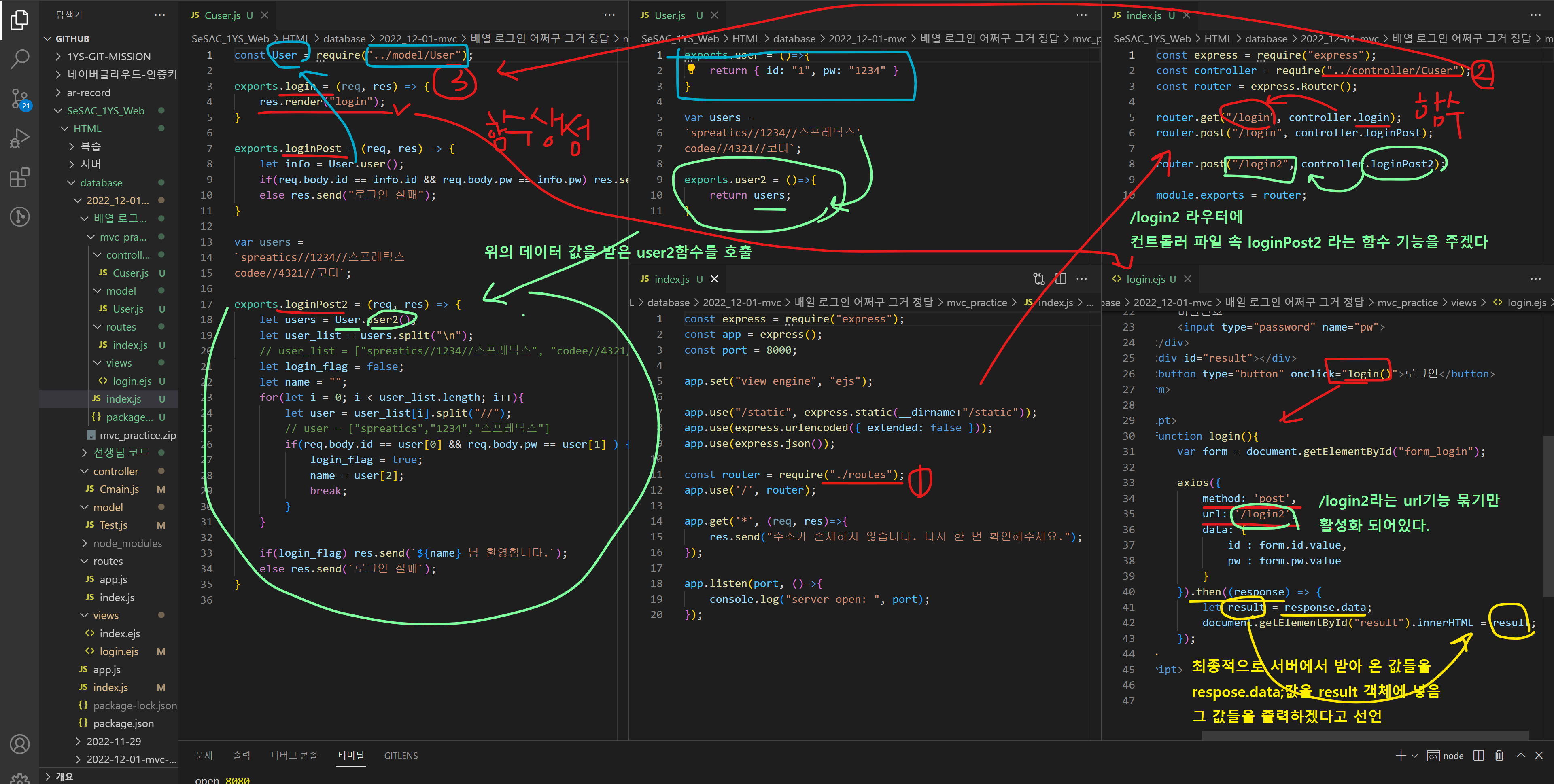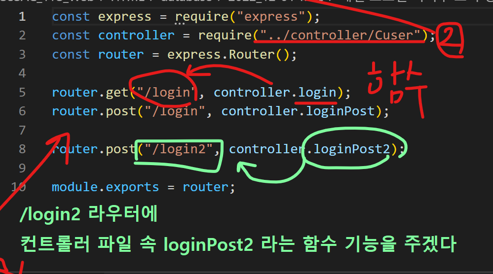 /login2 라우터에 controller객체의 login2라는 함수가 있다.