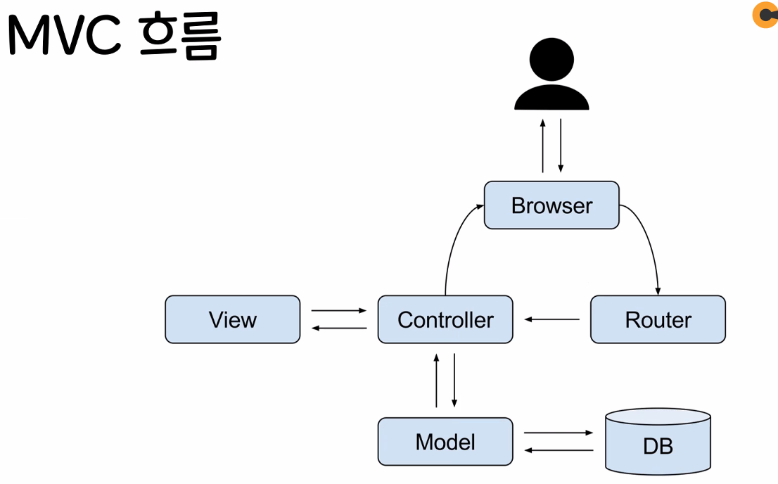 컨트롤러는 그 사이에 또 모델이랑 소통하는데 모델은 데이터베이스와 소통한다.