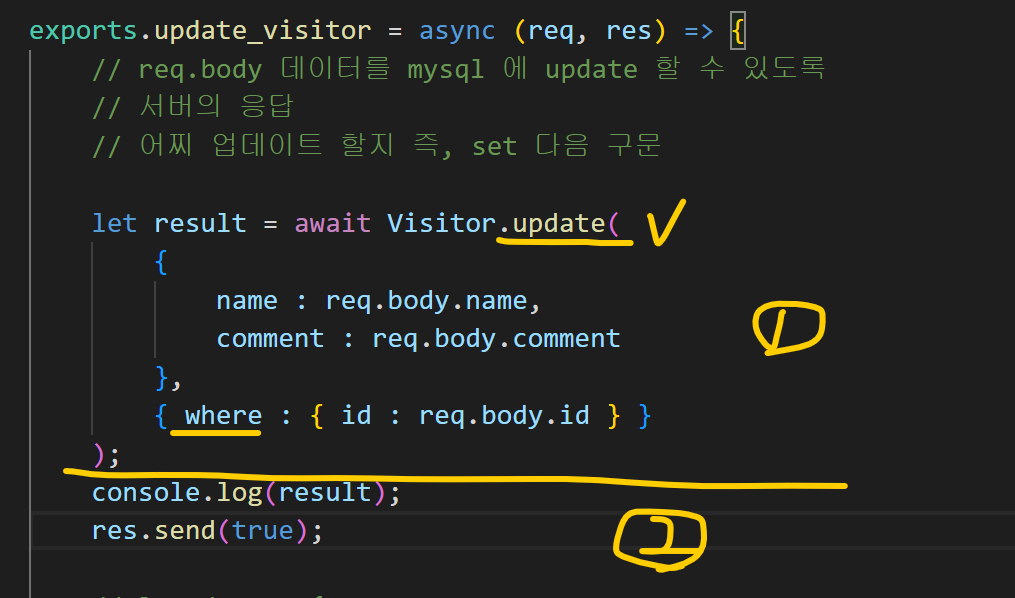 // req.body 데이터를 mysql 에 update 할 수 있도록