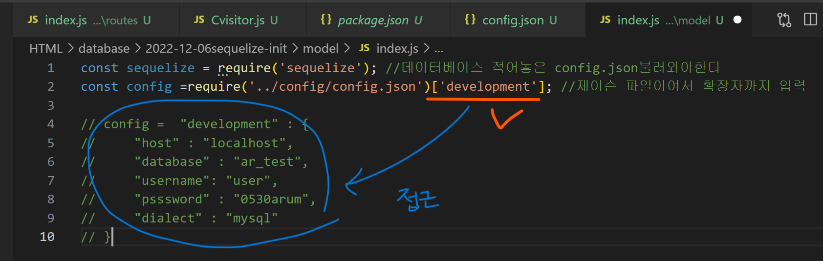 const Sequelize = require('sequelize'); //데이터베이스 적어놓은 config.json불러와야한다