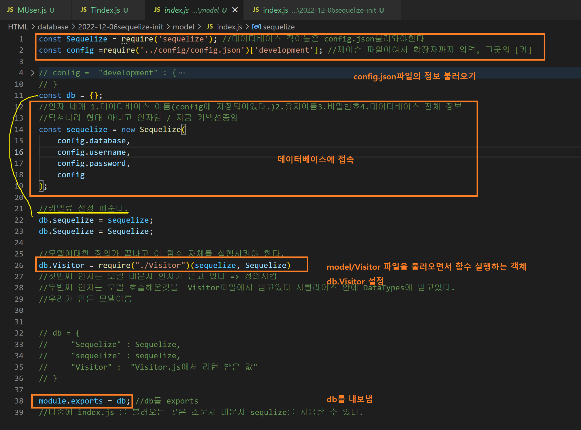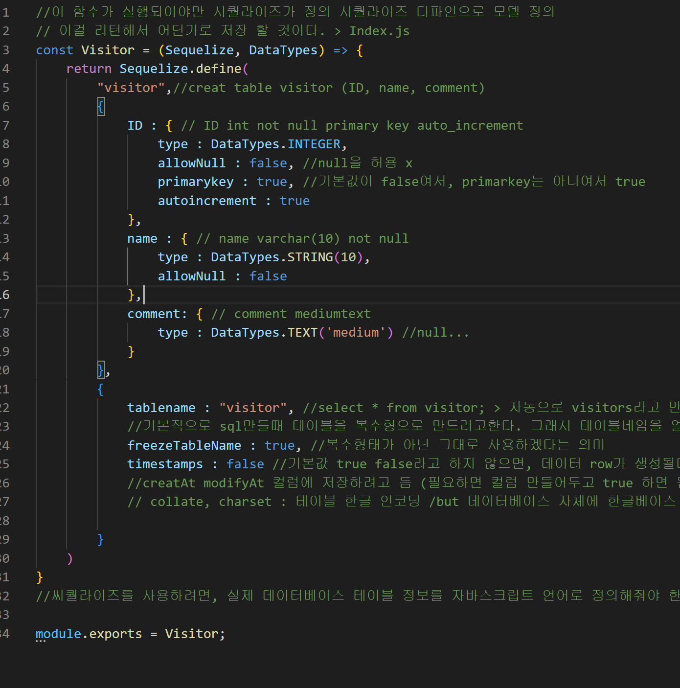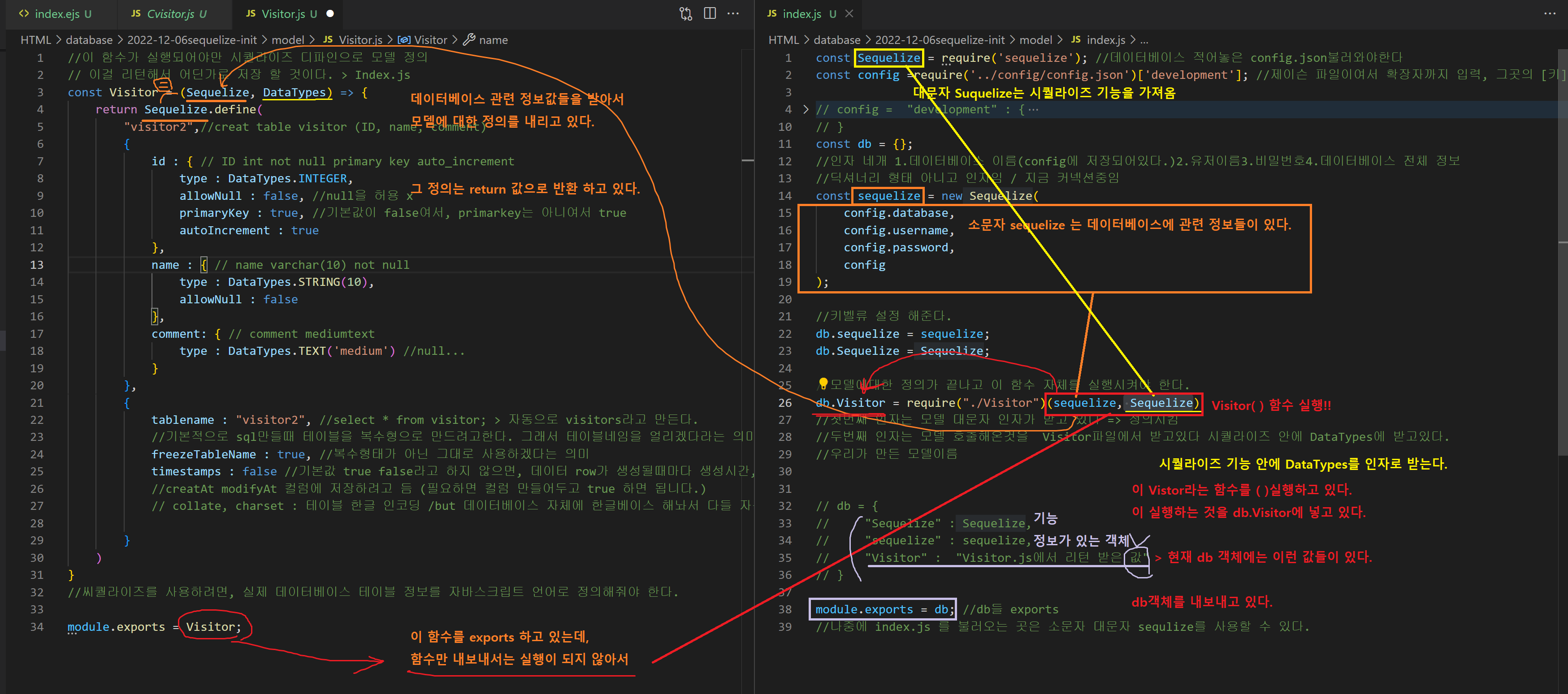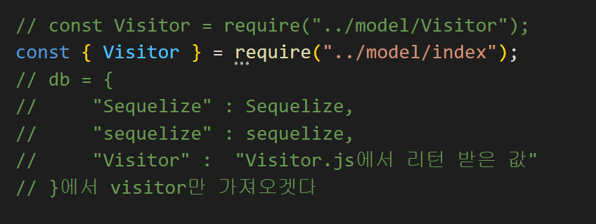 model.index.js 통해 시퀄라이즈와 Visitor에 접근 할 수 있다.