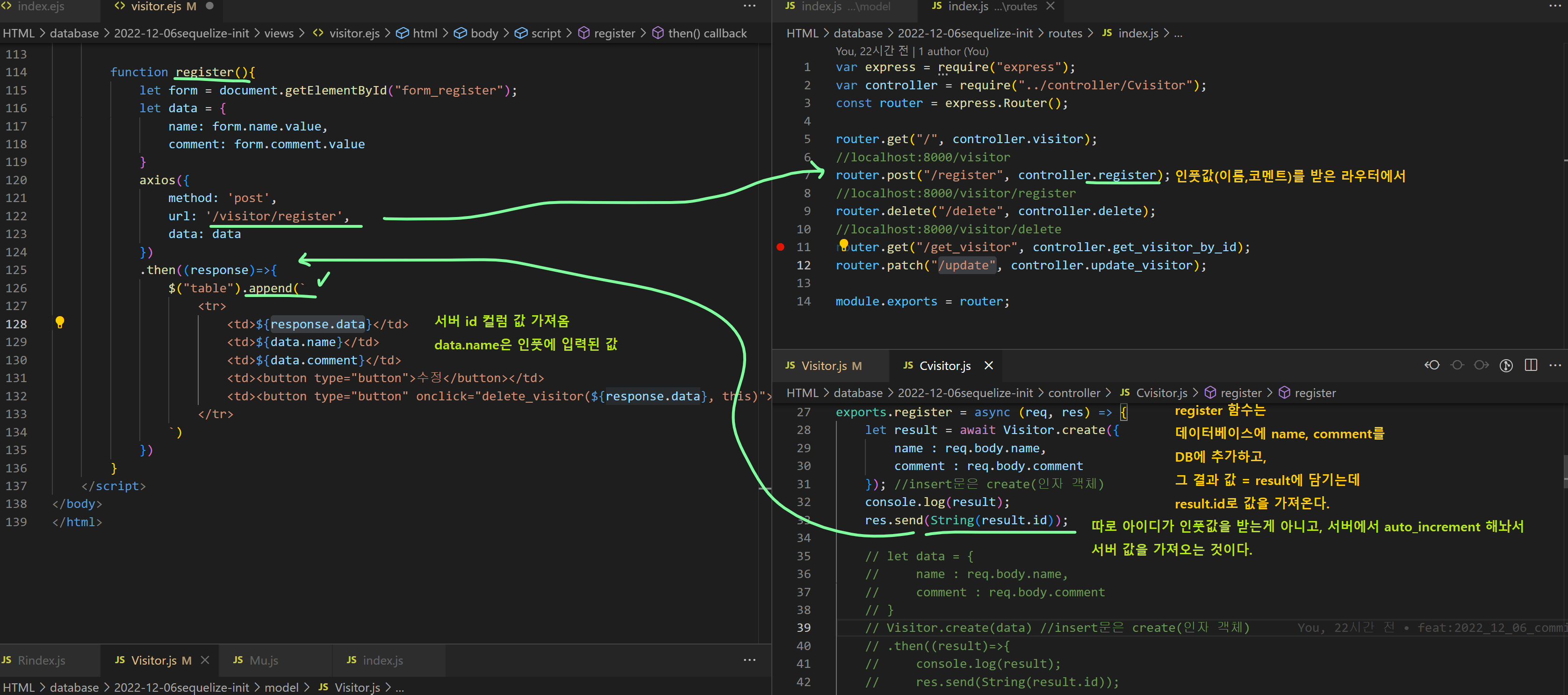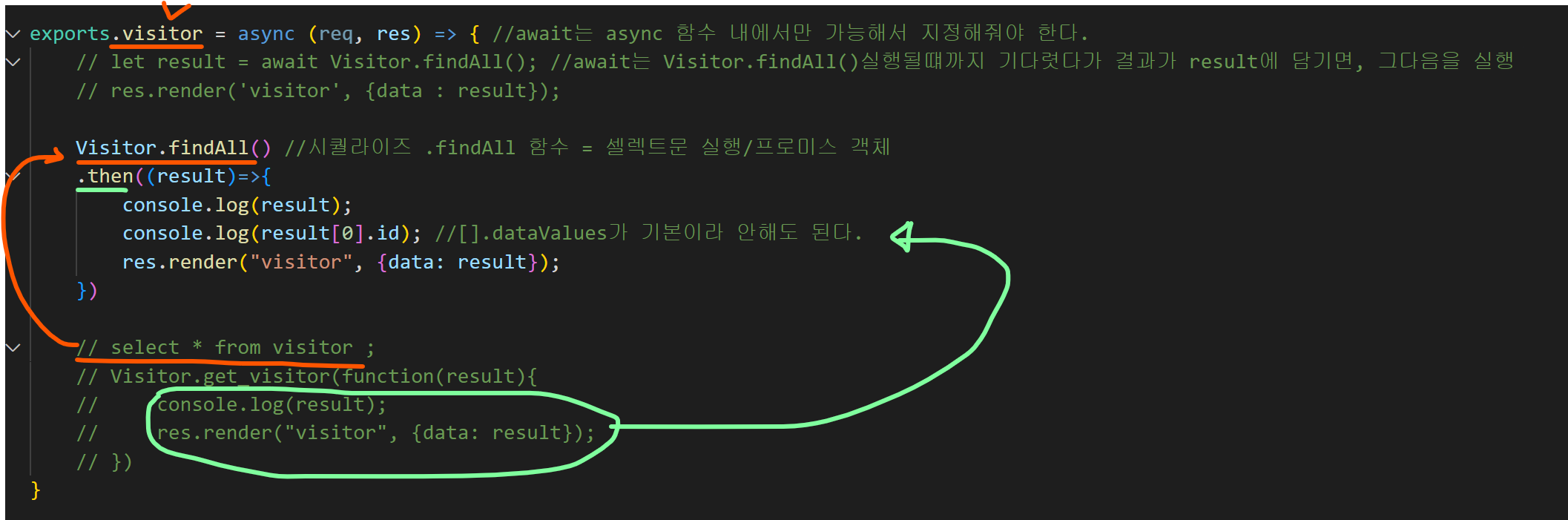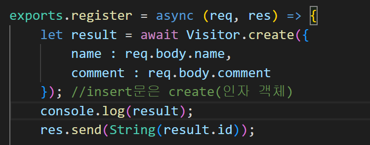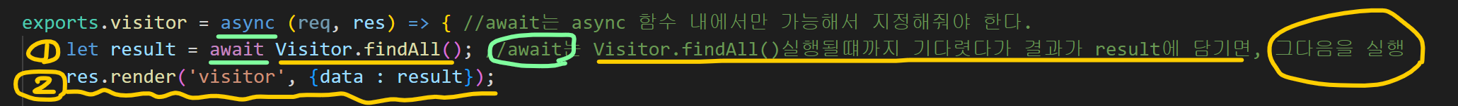 model.index.js 통해 시퀄라이즈와 Visitor에 접근 할 수 있다.