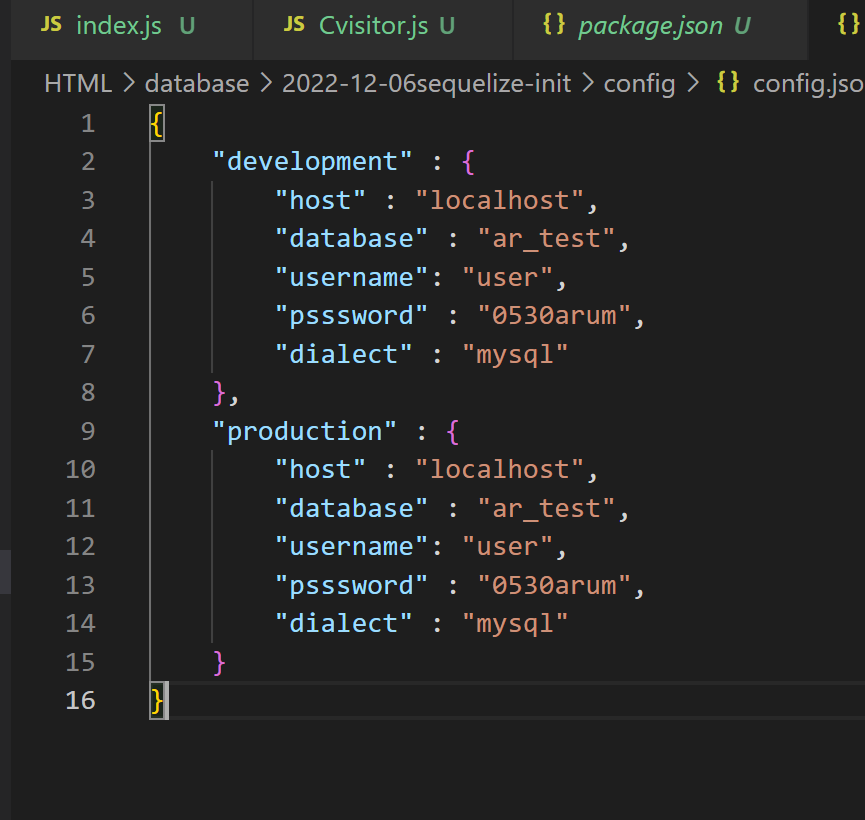 sepuelize, Sepuelize 값들을 넣어 준다.
