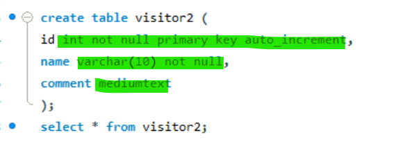 //select * from visitor; > 자동으로 visitors라고 만든다.