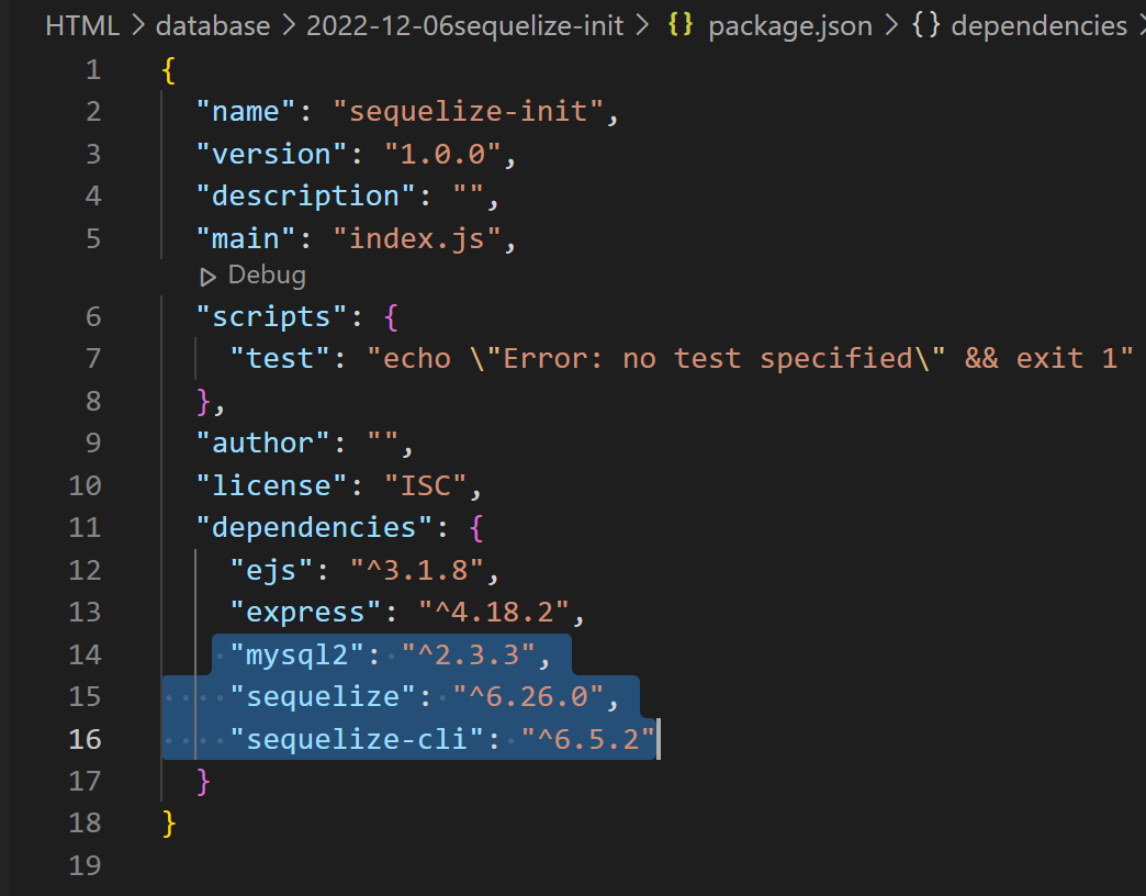 - mysql2 : mysql와 시퀄라이즈 연결하는 드라이버 도구