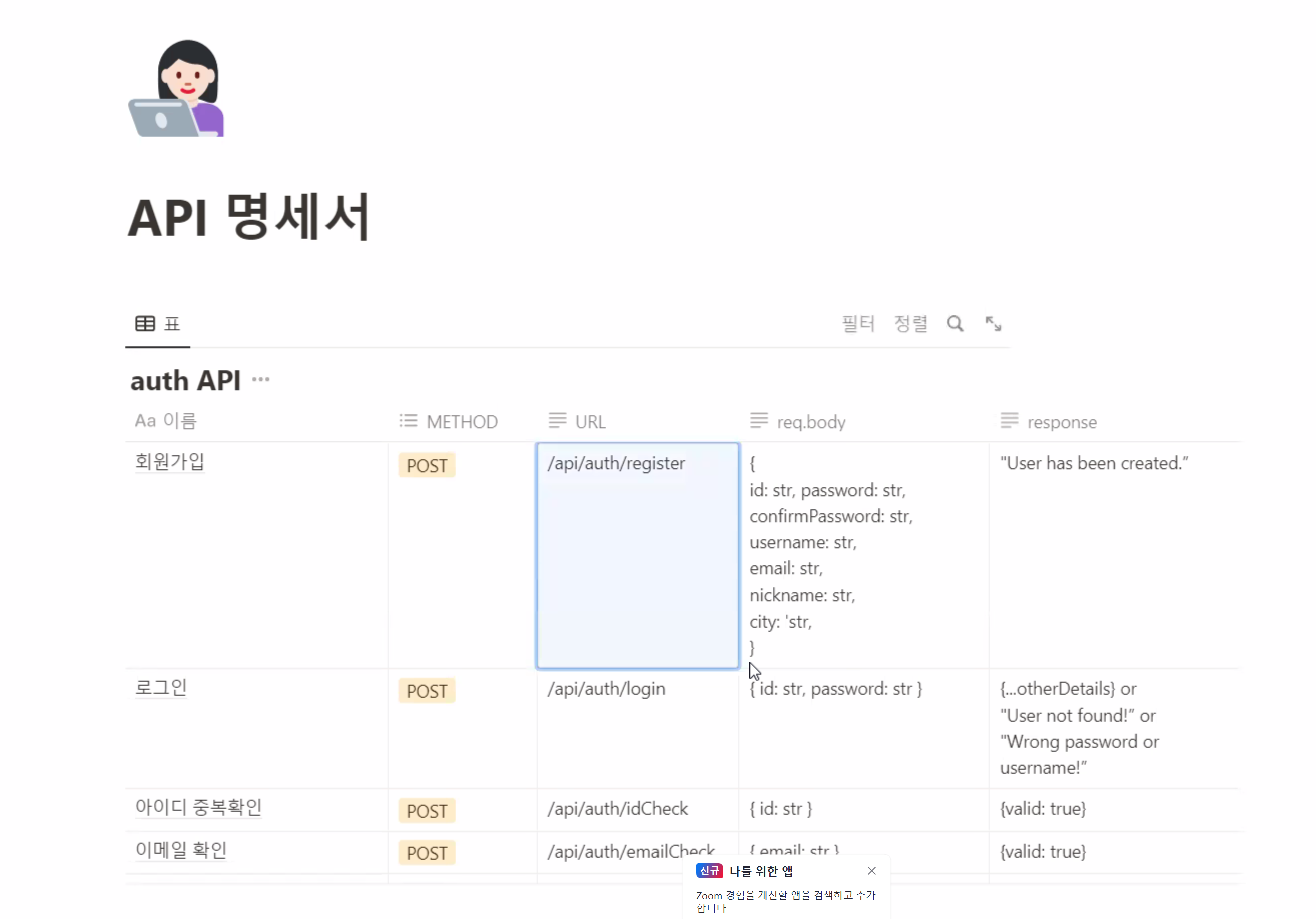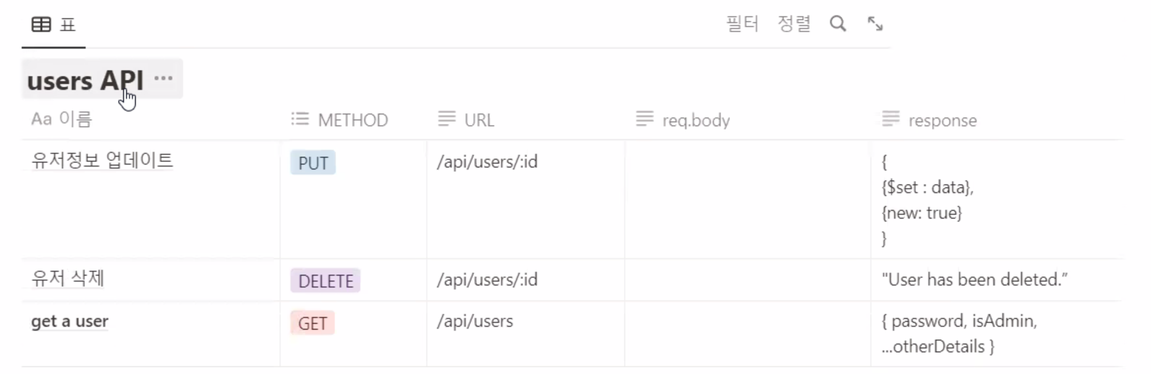 요청 메소드, URL, 보낸 데이터, 응답으로 어떤것을 보낼지 정의하면