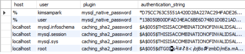 ALTER USER 'kimsampark'@'%' IDENTIFIED WITH mysql_native_password BY 'qwer1234';