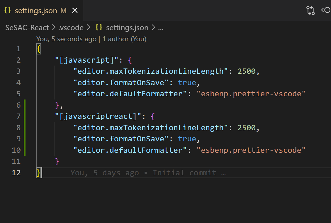 vscode가 기본적으로 prettier를 먹도록 하는 셋팅을 해줍니다.