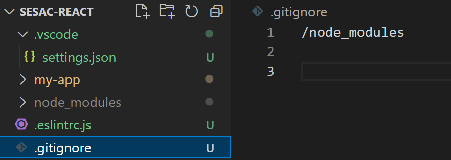 - .gitingnore 파일 > 노드모듈스 제외