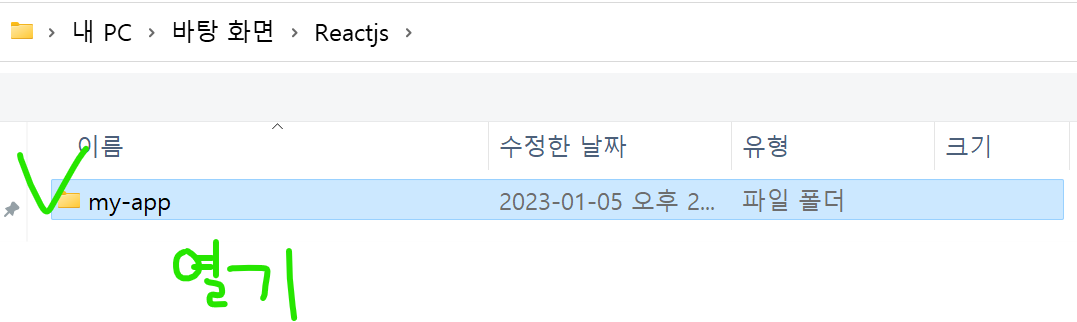 생성한 리엑트 폴더앱만 열어줘야 한다.