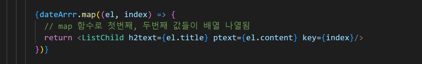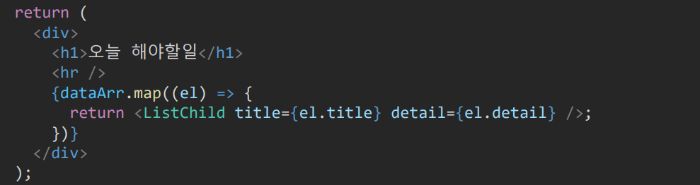 <ListChild h2text="리액트 공부하기" ptext="state 사용법 익히기"/>