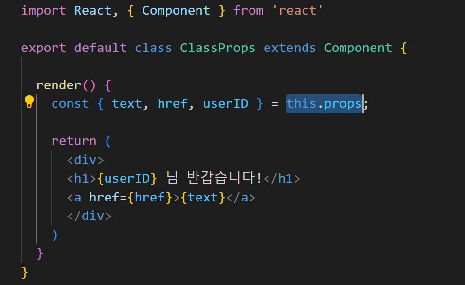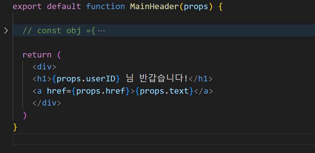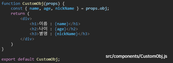 - 그리고 다양한 데이터는 props라는 객체 하나로 받아서 사용이 가능함