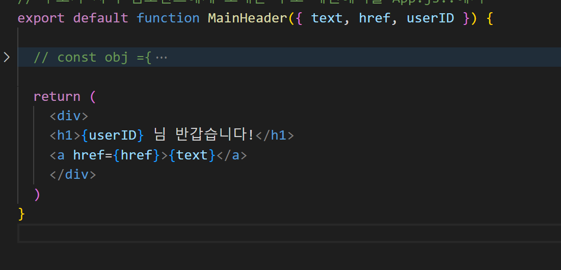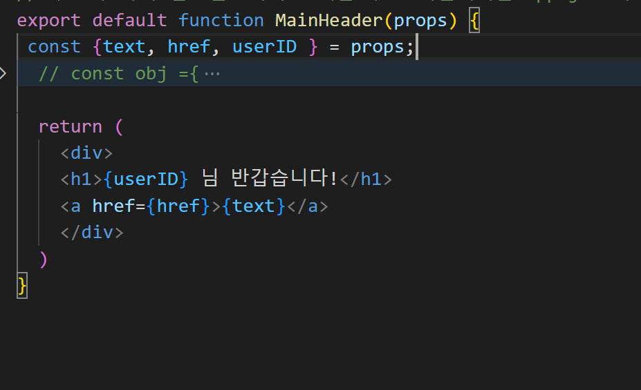 자식 MainHeader.jsx 이 { text }로 값을 받고 있다