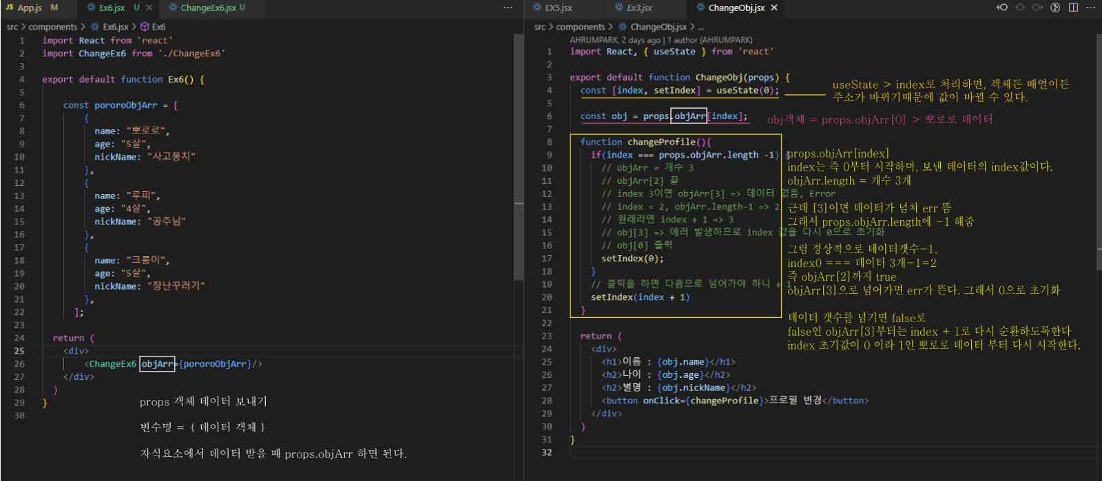 데이터 순환 구조하는 ChangeObj.js 컴포넌트를 만든다.