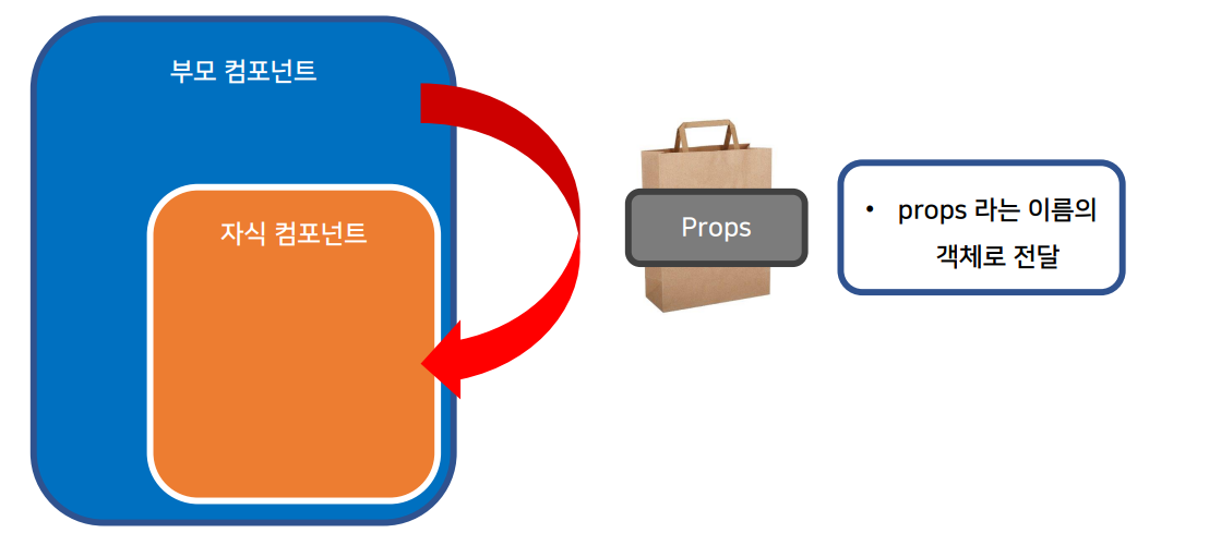 즉, 데이터 전달 할때 props라는 객체형태로 전달