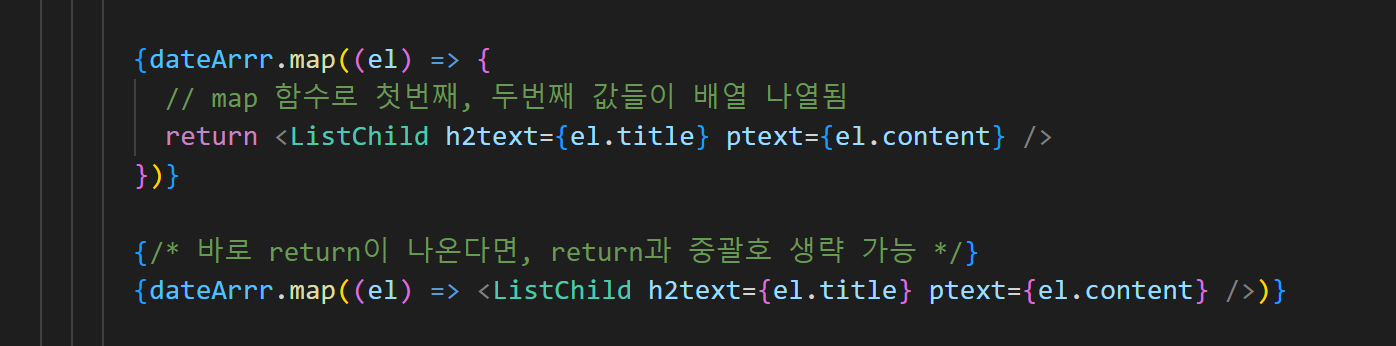 더 간단하게 하는 방법은 jsx를 통해 html과 js를 혼용합시다.