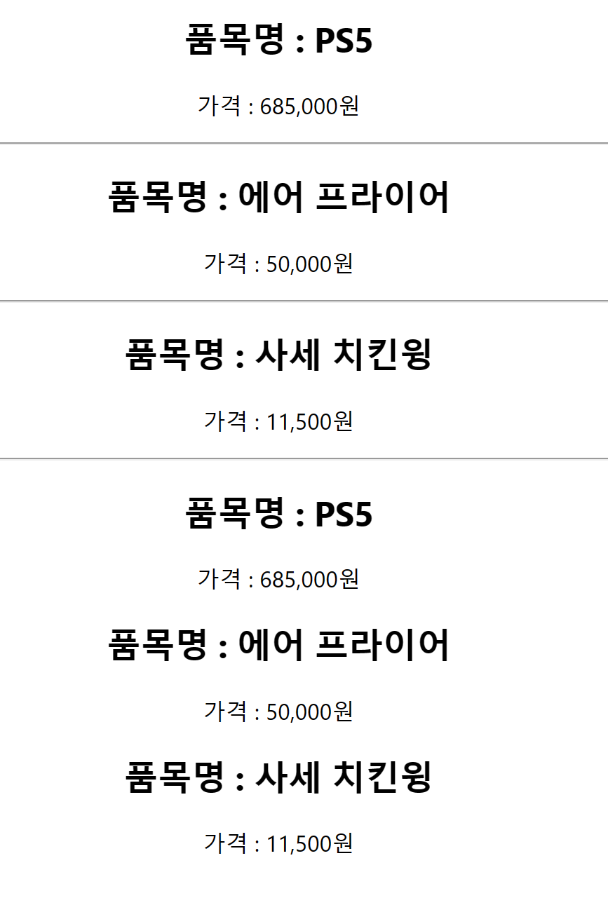 전달되는 오브젝트의 배열은 다음 장 코드를 참고
