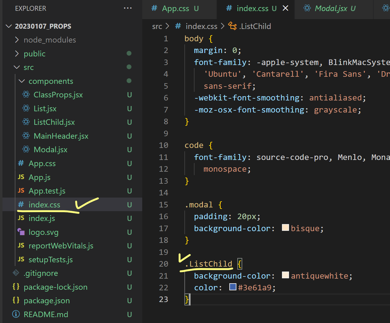 해당 컴포넌트 return div에 className="ListChild"라고 해야 한다.
