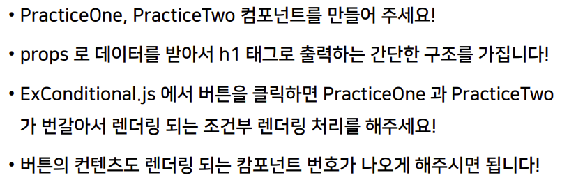 // 조건부 랜더링은 가급적 state > 반영된것을 바로바로 보기 위함