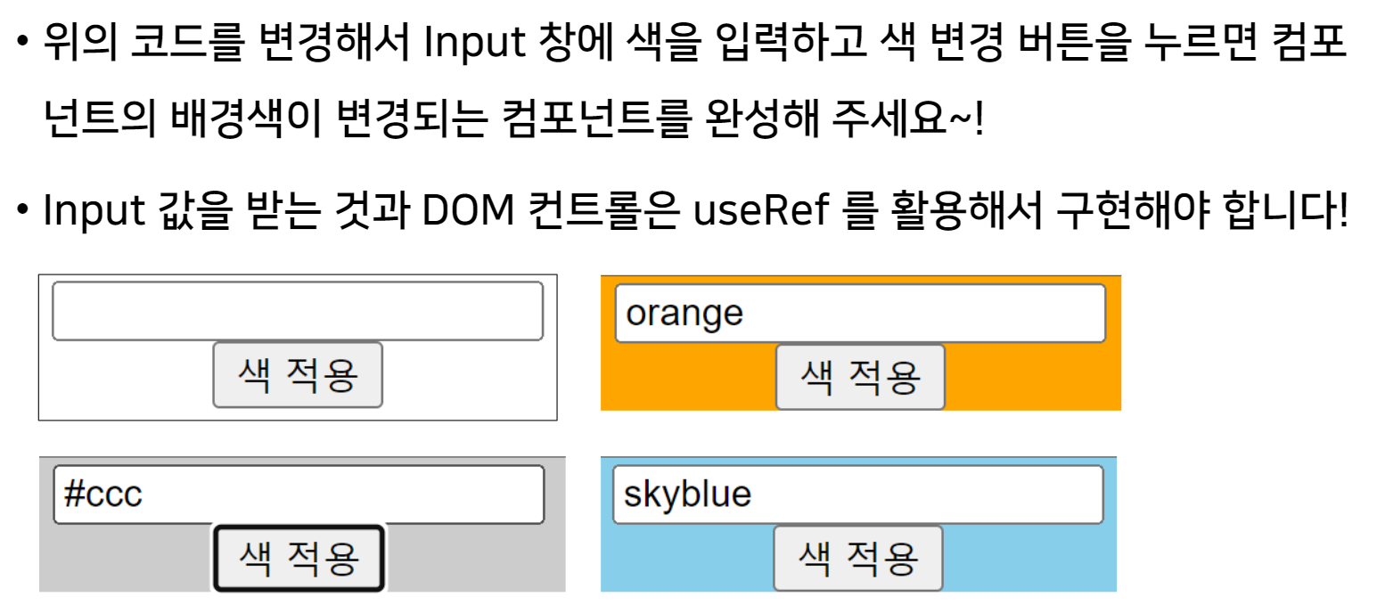 <input ref = {ref} /> // 선언된 변수를 사용할 요소 input