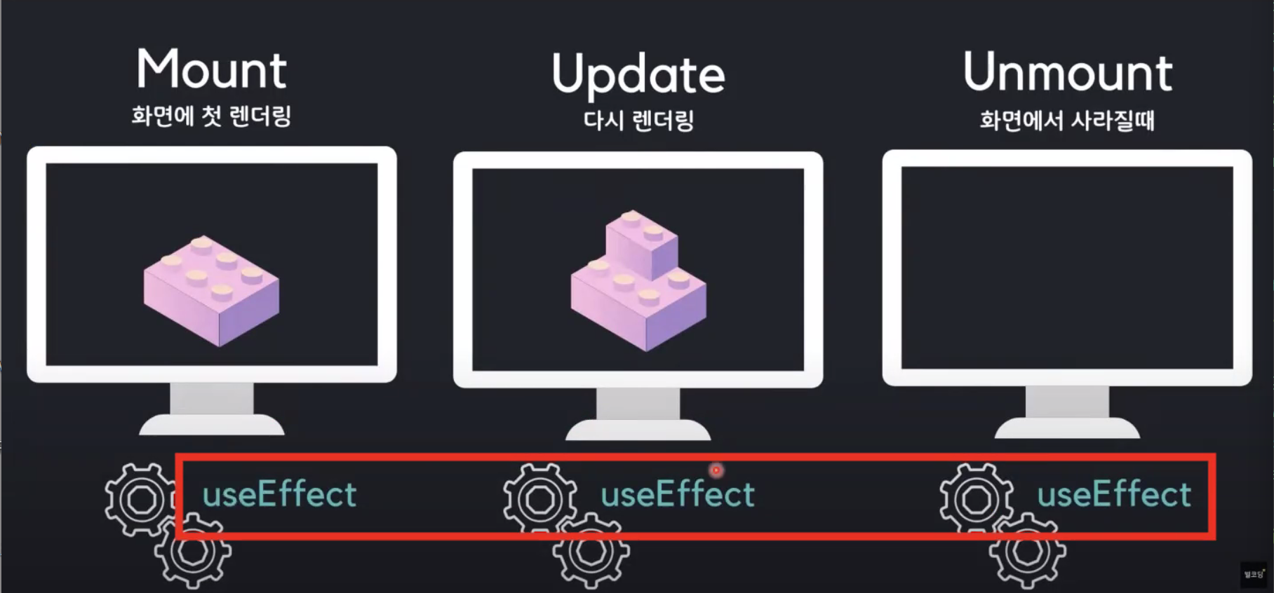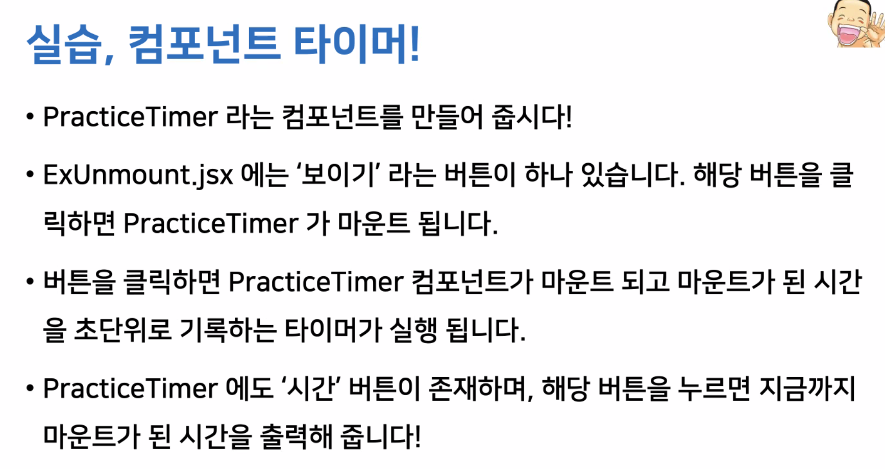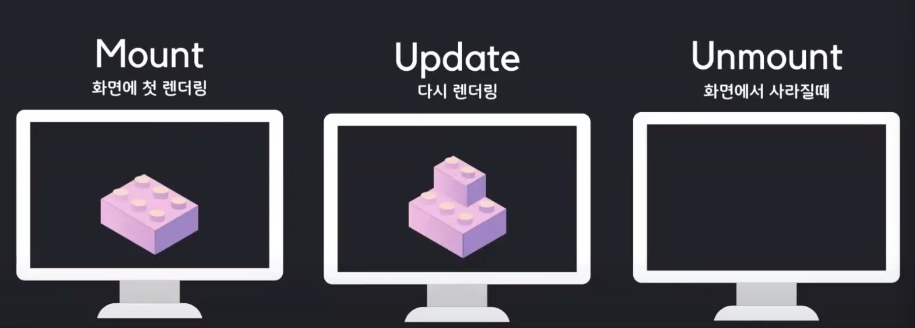 Unmount : 조건부로 사라지게 될 때, 화면에서 사라질 때