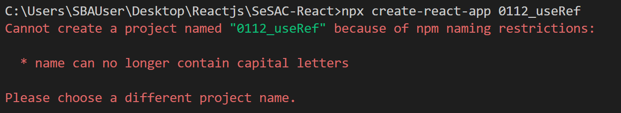 npx로..최신을 써서 대문자이름은 이제 받지 않는다.