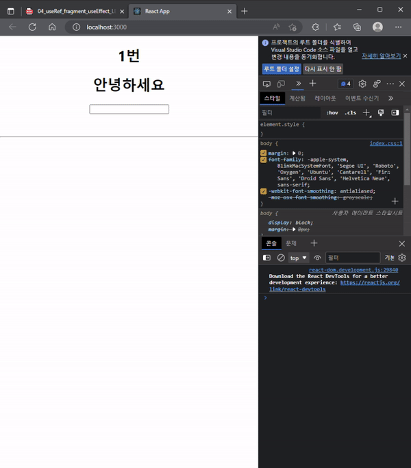 개발할때 쓰는 코드라 / 무조건 두번씩 실행 된다.