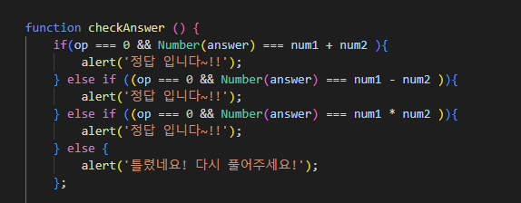 인풋태그에 공식 답을 넣으면, 정답이면 정답 / 틀리면 틀렷다고 뜨게 하기!