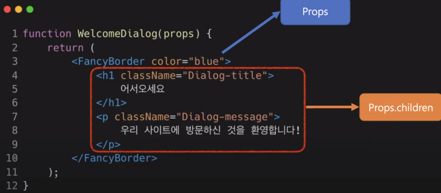 특정 컴포넌트 안에 들어있는 자식요소들을 받아서 쓸수 있다!