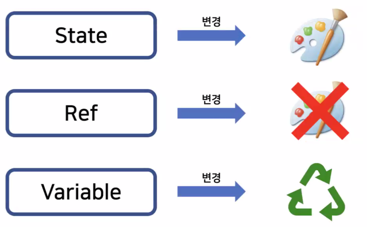 스테이트는 값이 변경되면 컴포넌트가 리랜더링 된다.