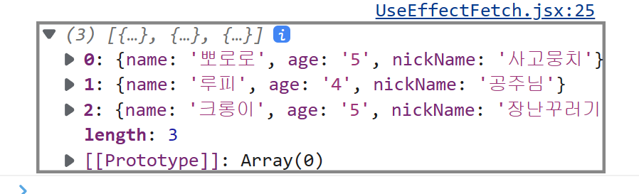 컴포넌트가 최초 마운트 될 때 유즈이팩트로 서버로 데이터 요청하고