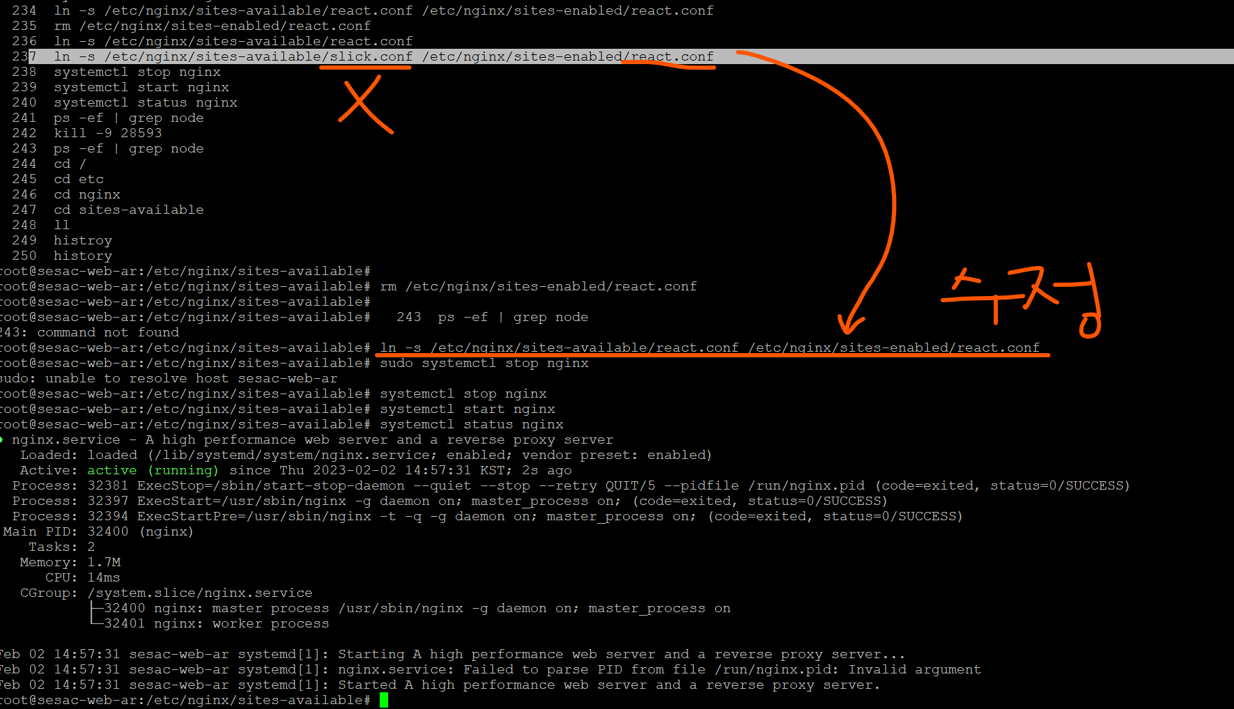 ex) sudo vi /etc/nginx/sites-available/slick.conf